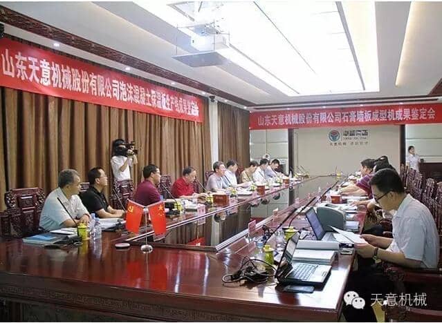 為加快產業(yè)結構轉型升級,突出科技創(chuàng)新驅動企業(yè)發(fā)展,7月23日,由山東省機械工業(yè)協(xié)會處長李玉奎帶隊一行領導專家,蒞臨天意機械組織召開 "泡沫混凝土保溫板生產線” 和 “石膏墻板成型機” 科技成果鑒定會。濟寧市兗州區(qū)副區(qū)長周詠輝,集團董事長劉洪彬、技術總監(jiān)陳維國等領導出席了本次會議。