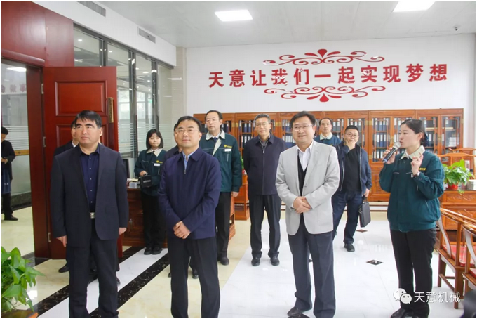 2018年11月27日,省政協(xié)辦公廳副主任朱興剛帶領(lǐng)“政協(xié)工作齊魯行”集中采訪團(tuán)一行23人,在市政協(xié)副主席陳希忠、兗州區(qū)區(qū)委書記王宏偉等領(lǐng)導(dǎo)陪同下,蒞臨天意機(jī)械考察指導(dǎo),公司董事長劉洪彬熱情接待采訪團(tuán)一行并陪同參觀。