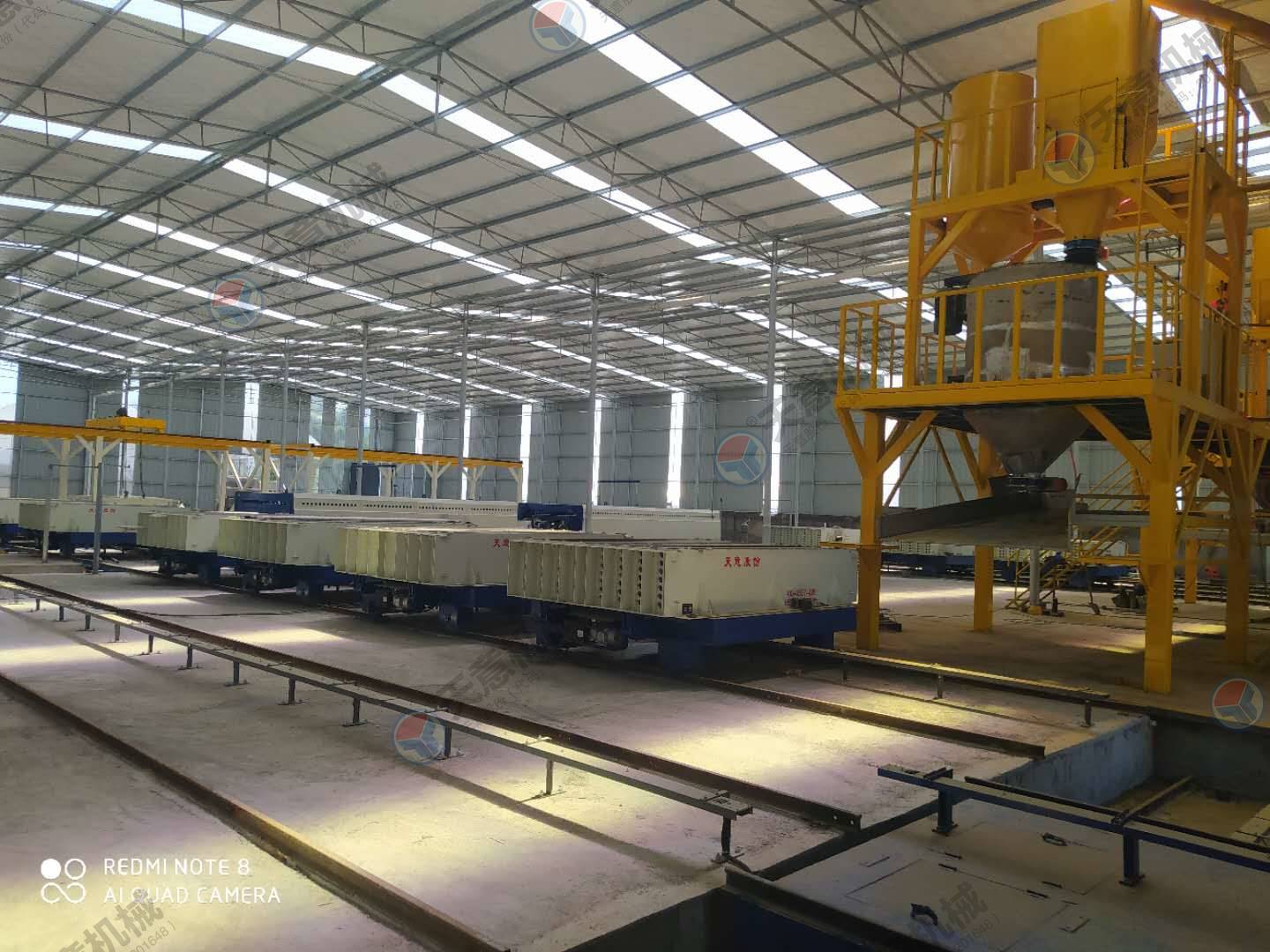 9、生產(chǎn)線設(shè)有封閉式自動(dòng)噴灑脫模劑裝置(減少了人工現(xiàn)場(chǎng)噴灑作業(yè)及脫模劑的浪費(fèi),生產(chǎn)觀場(chǎng)更加節(jié)約環(huán)保)。